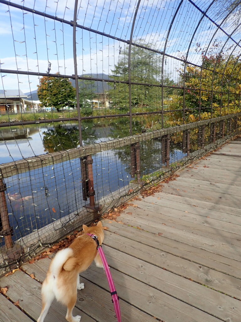 今朝は、橋の下に鯉さんがいっぱいで気になる柴犬。
