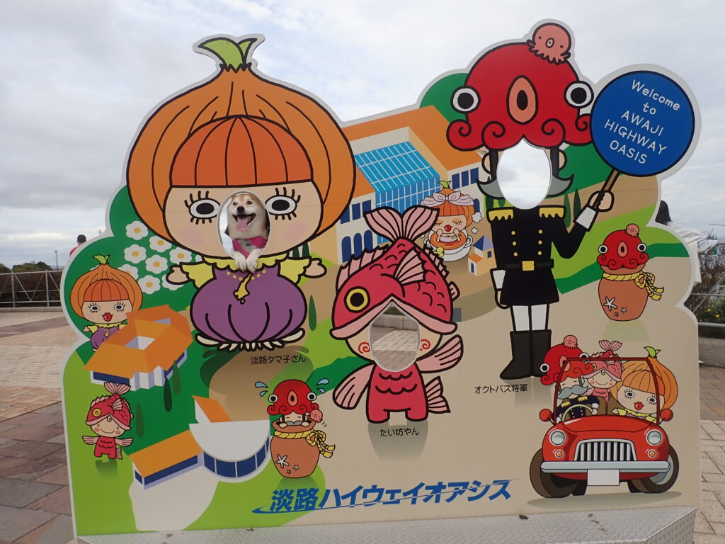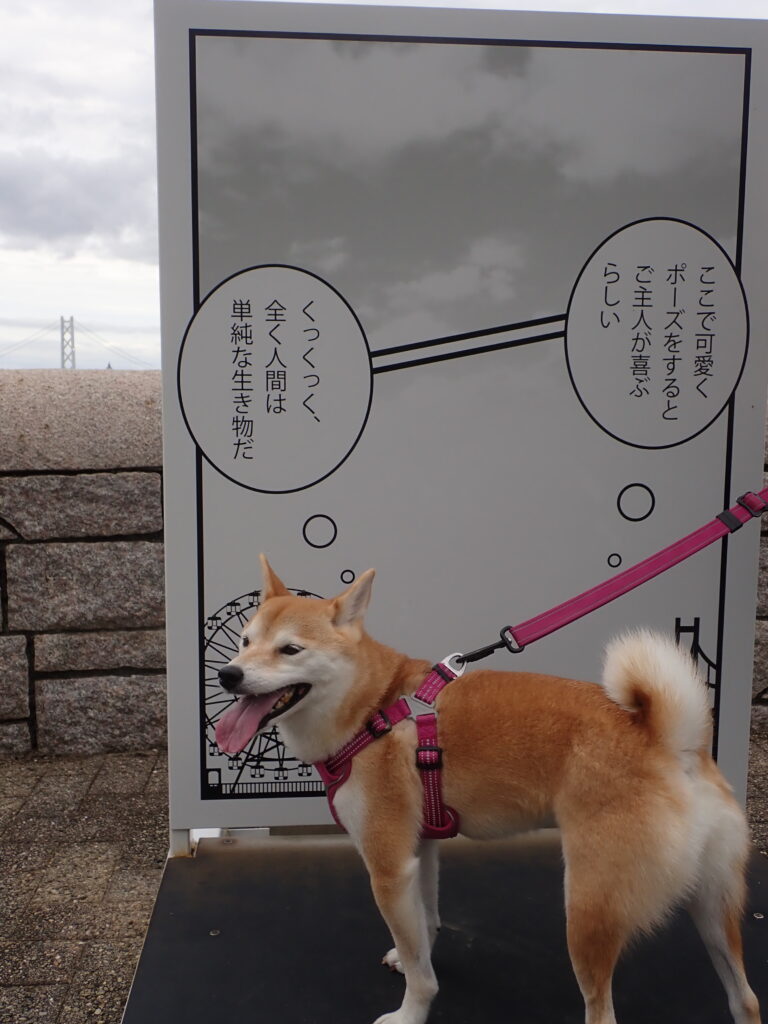 ドッグカフェの前にあった撮影スポットで記念撮影。