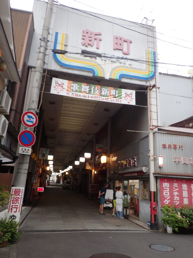 商店街を抜けて戻ることに。お肉屋さんの前に人だかりが。