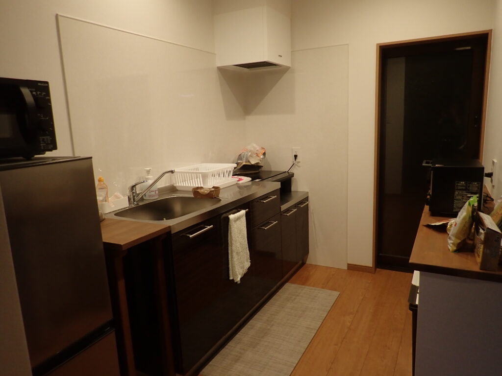 キッチンにはコンロや電子レンジなどの調理設備が揃っているので、