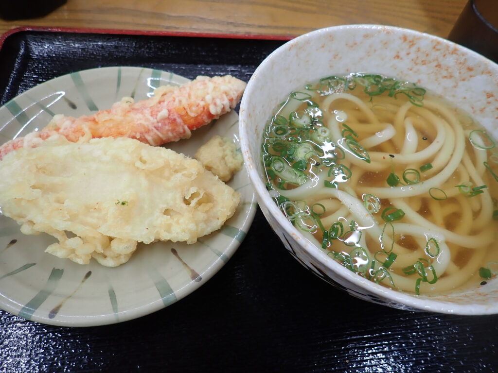 出汁の効いたシンプルな”かけうどん”と、朝から天ぷら。