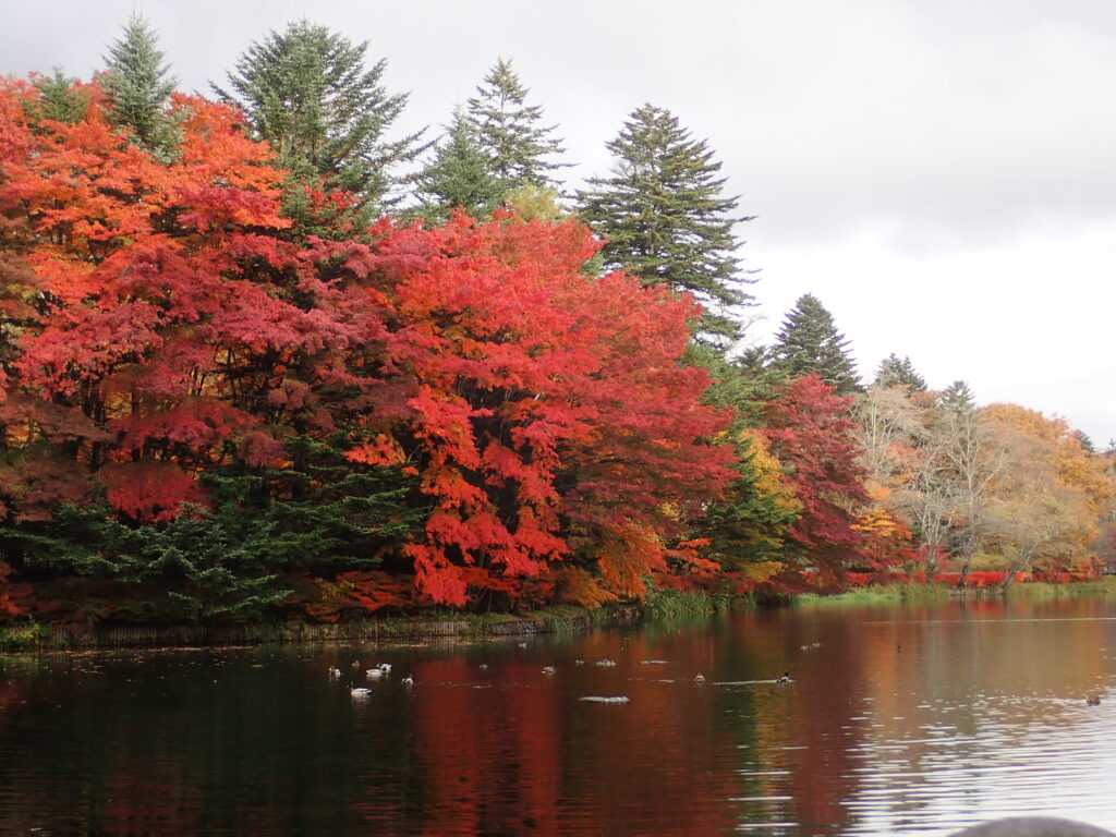 鮮やかな紅葉が楽しめた。鴨さんもいっぱい。
