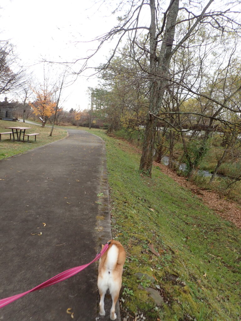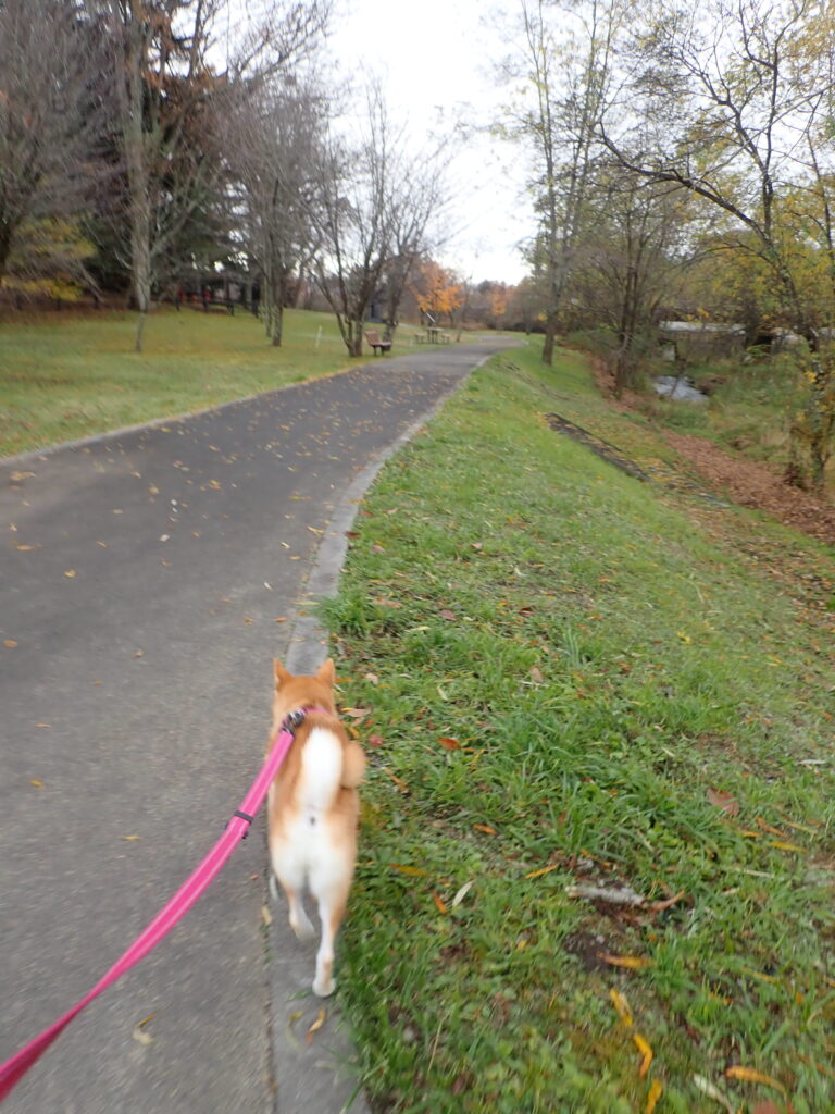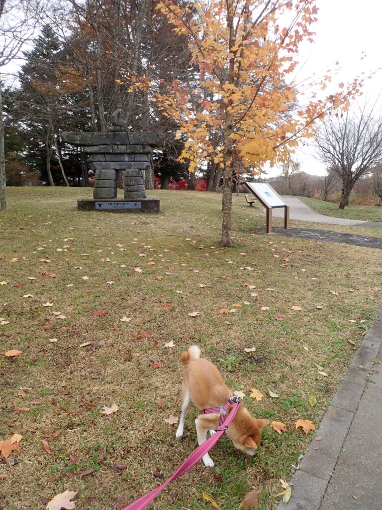 今朝は、久しぶりに役場前の小さい湯川ふるさと公園で散歩。