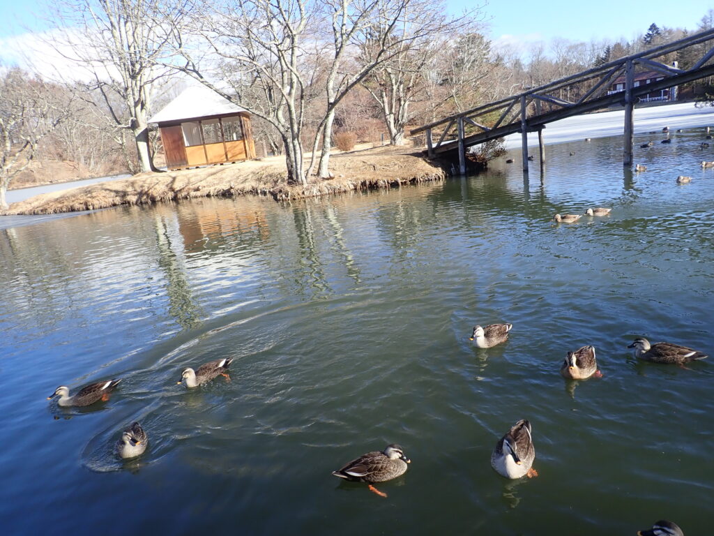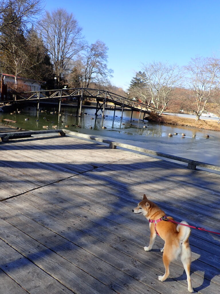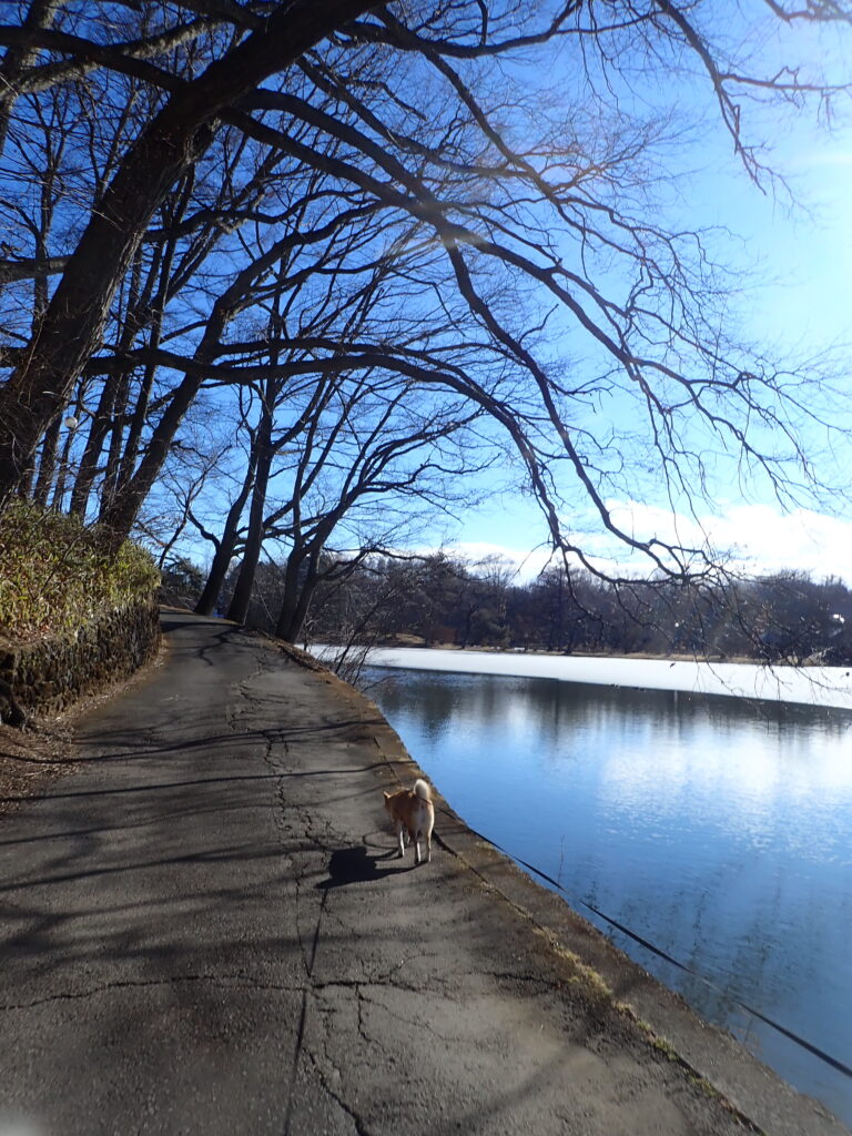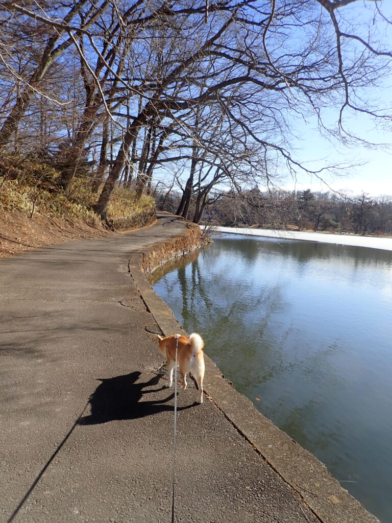 このところ冷え込んでいたので、湖はだいぶ凍ってた。