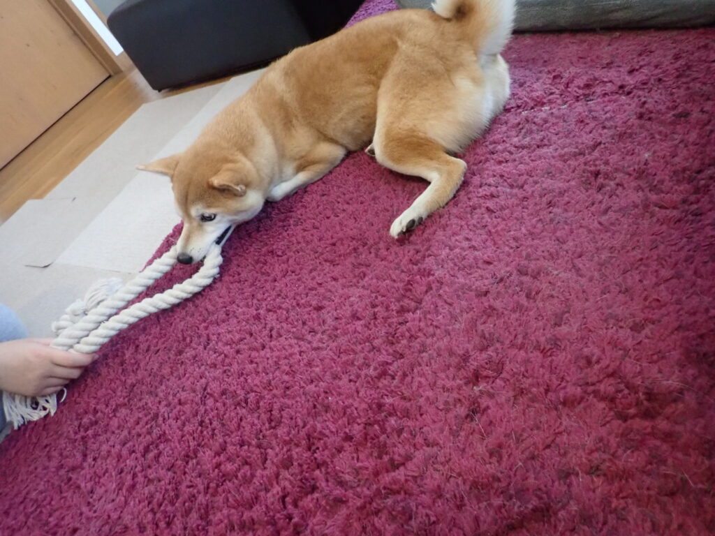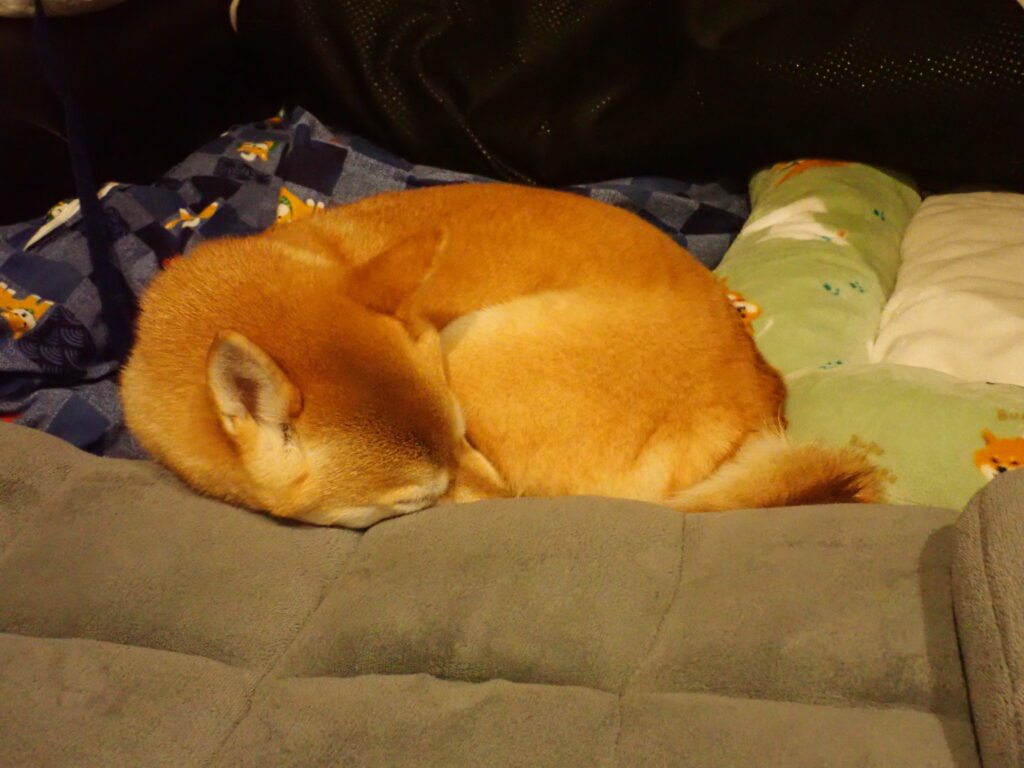 帰宅後は、ご飯を食べてすぐに就寝。久しぶりの来客にお疲れの柴犬。