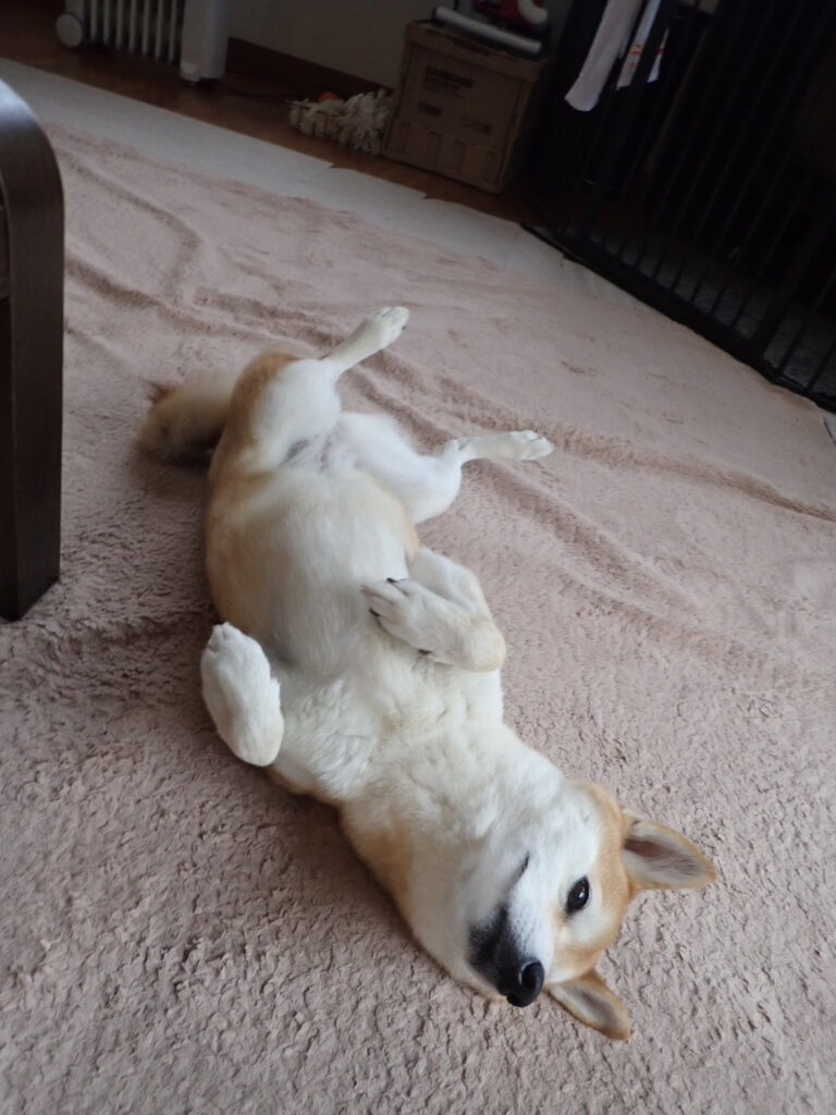 帰宅後、雨でウッドデッキ散策も日向ぼっこもできないが、それなりにご機嫌。