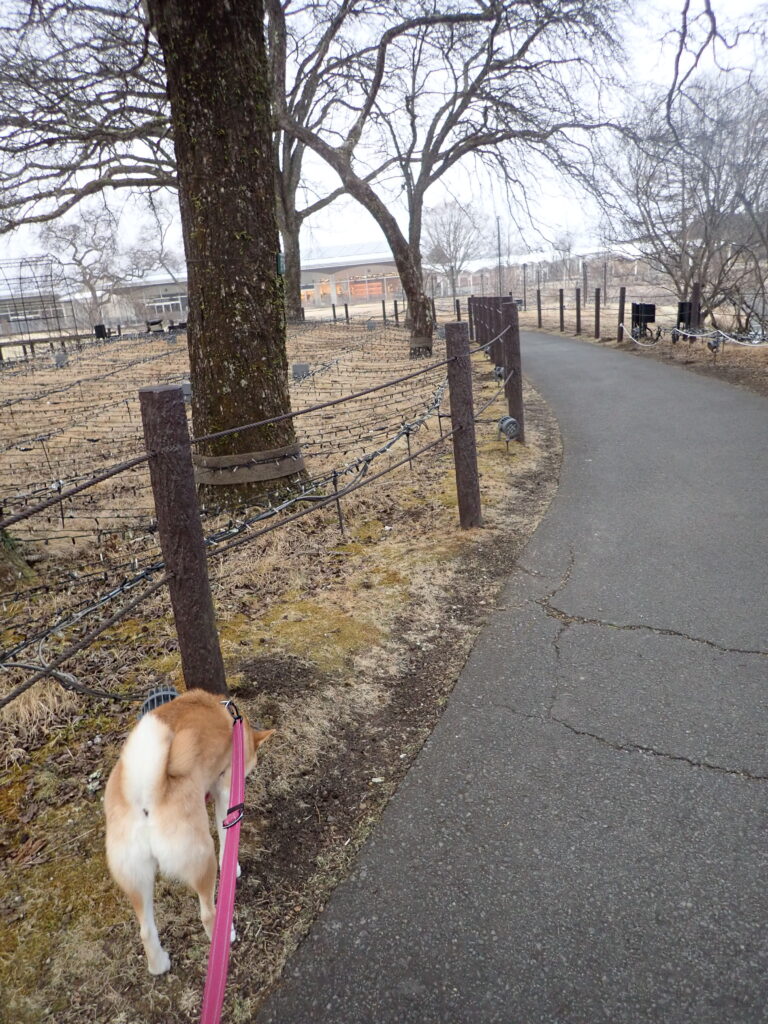 西側の芝生の広場で、週末に沢山訪れたであろうワンコの匂いを入念に確認。