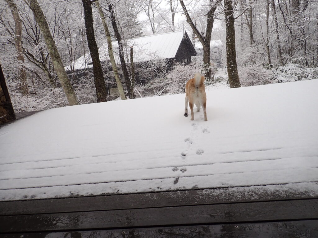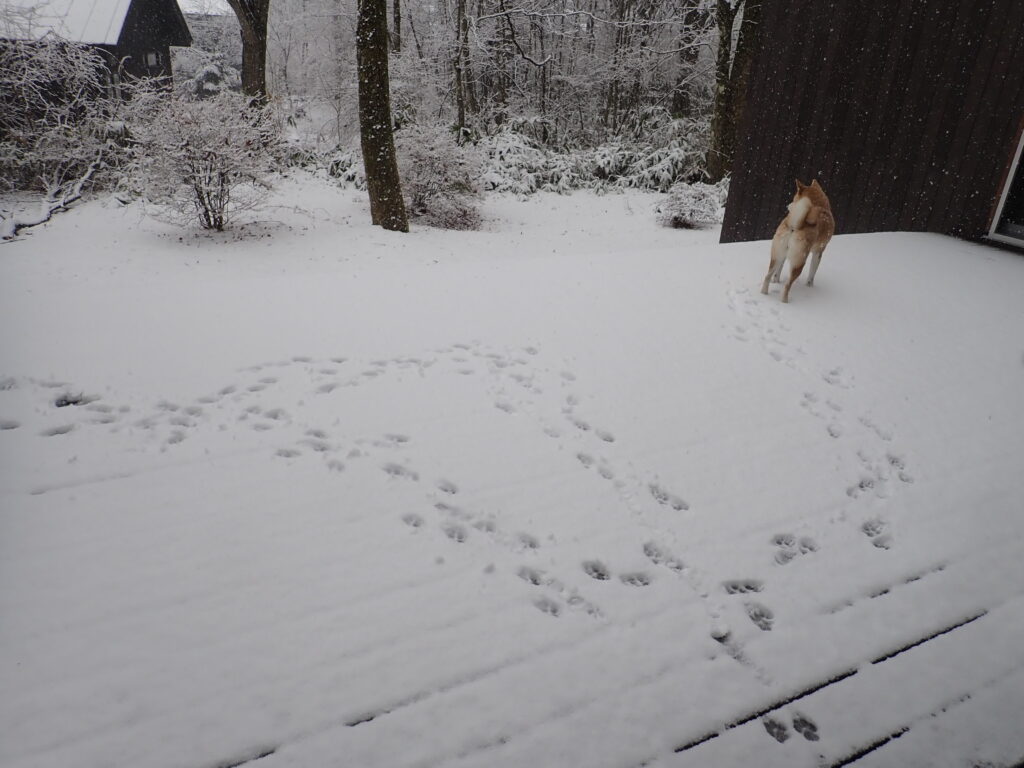 3月の大雪(前編) 2026年3月4日 日記 昨日の朝の雨はすぐに雪に変わり、お昼前には銀世界。 早速出動。 積もりたての雪を味わっている模様。 あっという間に柴犬の足跡がいっぱい。 その後、右往 左往し、 寒いのか、いつもより早めに雪まみれで戻って来た。 自分で落とした雪に、 興奮。 夕方は雪が降る中、ご近所散歩へ。 今朝は雪の積もった芝生で大興奮。明日に続く…。 「1日雪の予報」 コメントを残す コメントをキャンセル名前 (必須) メールアドレス(公開されません) (必須) ウェブサイト 次回のコメントで使用するためブラウザーに自分の名前、メールアドレス、サイトを保存する。 コメントコメント送信 Δ