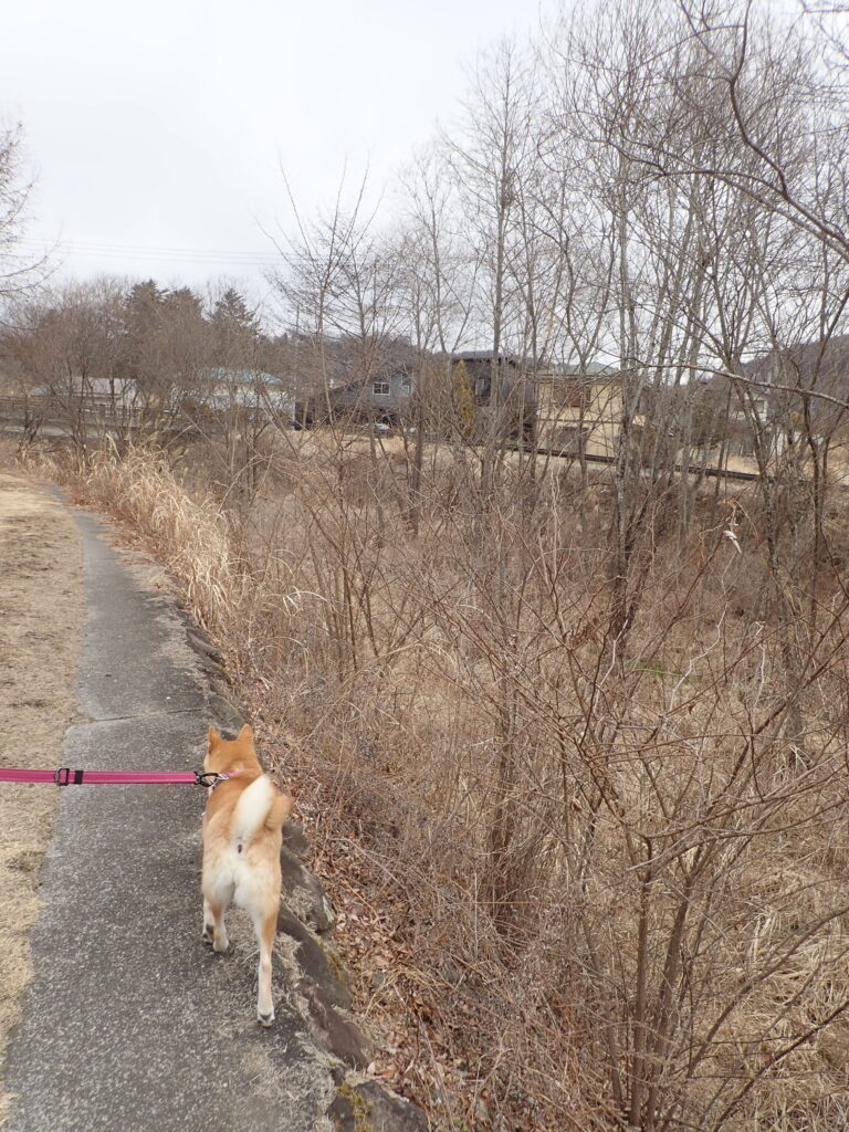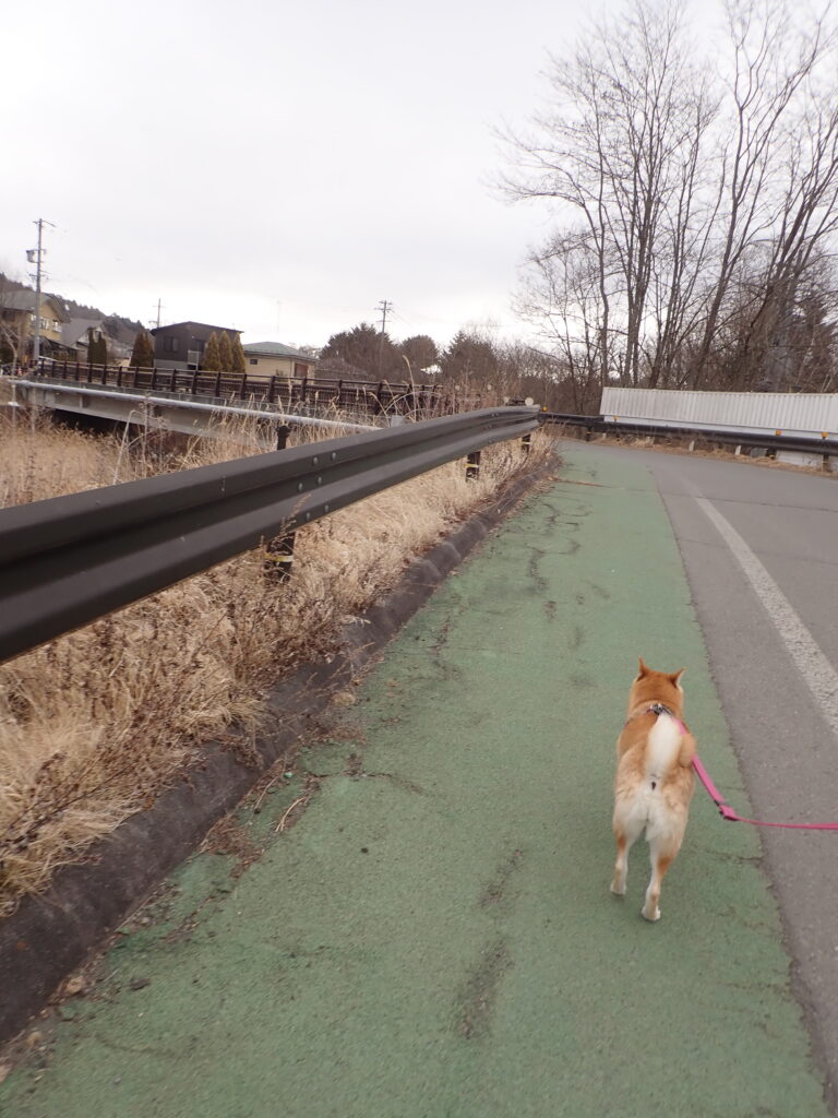 充実散歩 2026年3月14日 日記 今朝は、中軽井沢駅前駐車場から散歩スタート。 張り切り具合がうかがえる柴犬の後ろ姿。 まだ雪の残る歩道を歩き、 土手に行かず、 こちらの橋を渡り、 ひと周り。 今度は、こちらの橋を渡る。 順調なペースで、 湯川ふるさと公園まで到達。 帰りは木道を完歩。 土手から駐車場に戻る。いろいろと制覇し、充実の散歩。 「今朝も怯える」 コメントを残す コメントをキャンセル名前 (必須) メールアドレス(公開されません) (必須) ウェブサイト 次回のコメントで使用するためブラウザーに自分の名前、メールアドレス、サイトを保存する。 コメントコメント送信 Δ