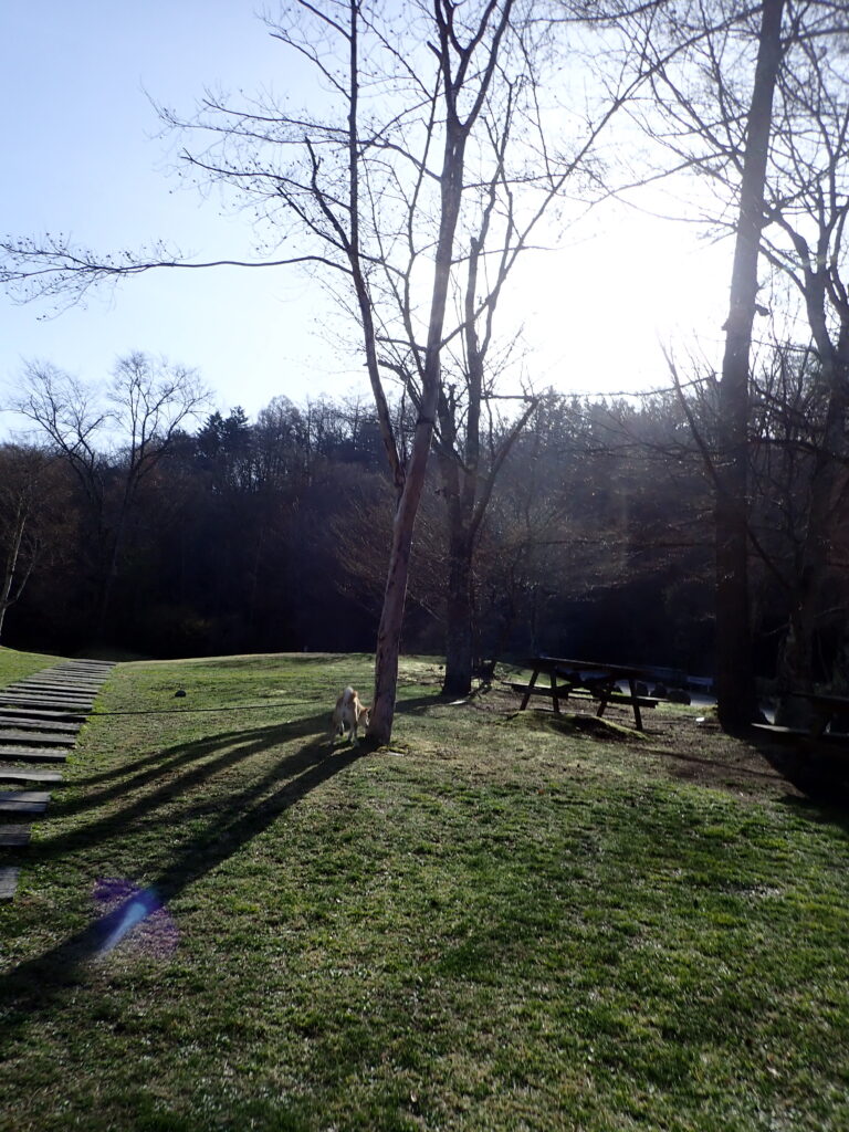 今朝の散歩会場に到着。