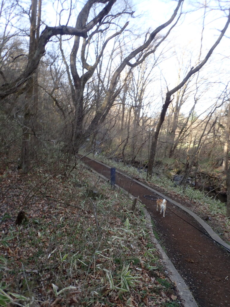 ハルニレテラスに向かう渓流沿いが工事中なので、ケラ池方面へ。