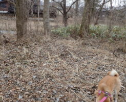 今朝は、中軽井沢駅前駐車場から散歩スタート。 線路沿いの芝生にて、 トイレ中に電車に遭遇。 ちょっと慌てる柴犬。 それでも最後までお見送り。 お見送りのあとは、すっかり雪の無くなった歩道を歩き、 軽くシャッシャッを済ませ・・・
