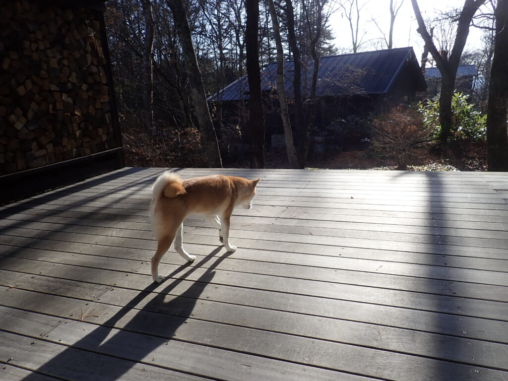 帰宅後はウッドデッキ散策。