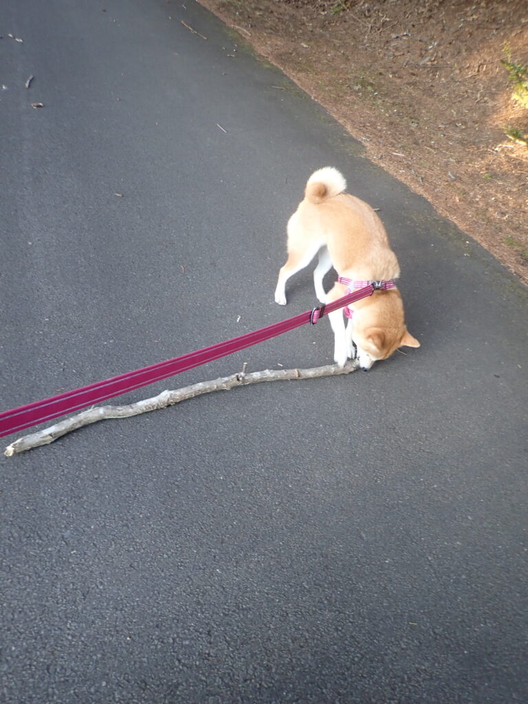 大きさは関係ないらしく、小物でもご機嫌の柴犬。